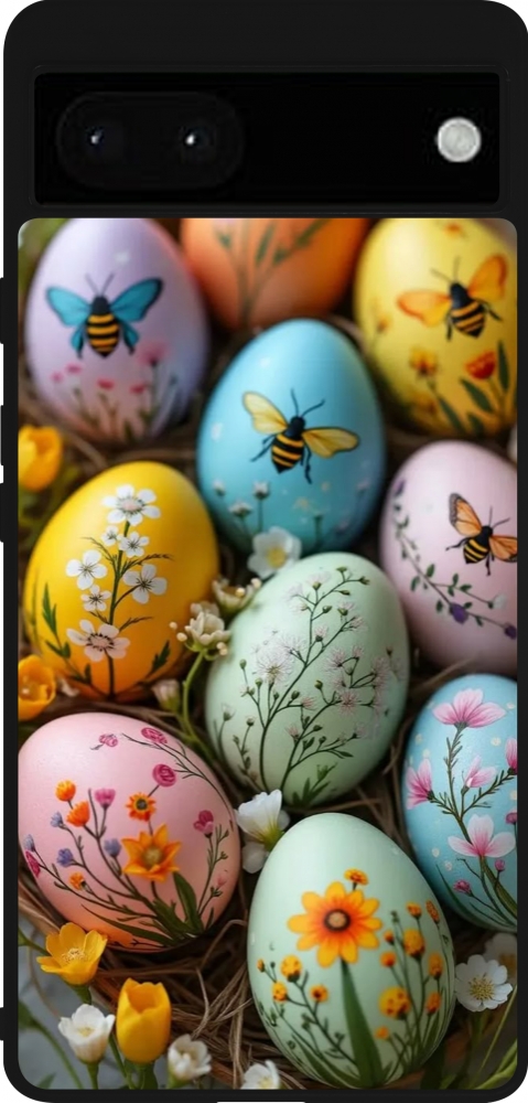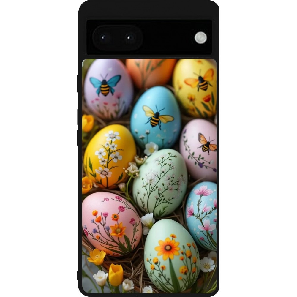 Coque Google Pixel 6a - Silicone rigide noir Easter 2026 Eggs with bees