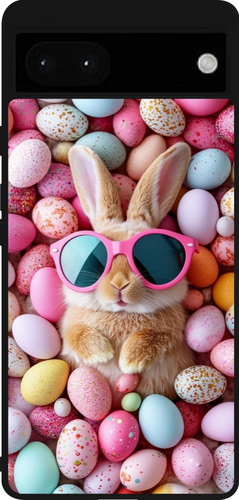 Coque Google Pixel 6a - Silicone rigide noir Easter 2026 Rabbit fun