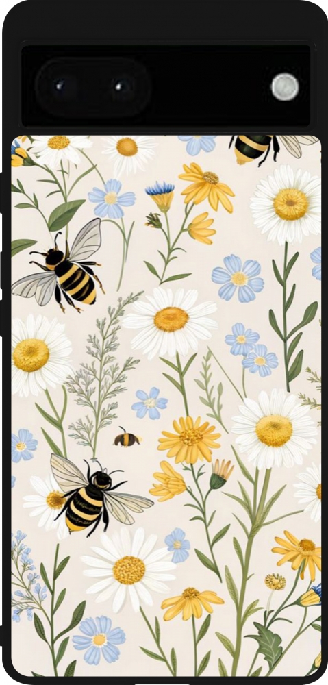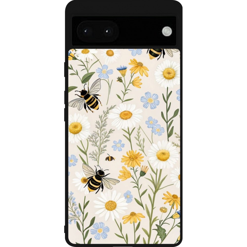Coque Google Pixel 6a - Silicone rigide noir Pattern bees Spring 2026