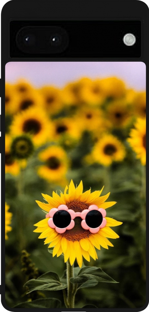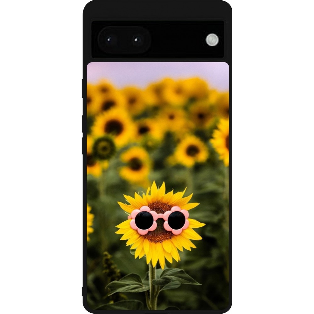 Coque Google Pixel 6a - Silicone rigide noir Sunflower with glasses Spring 2026