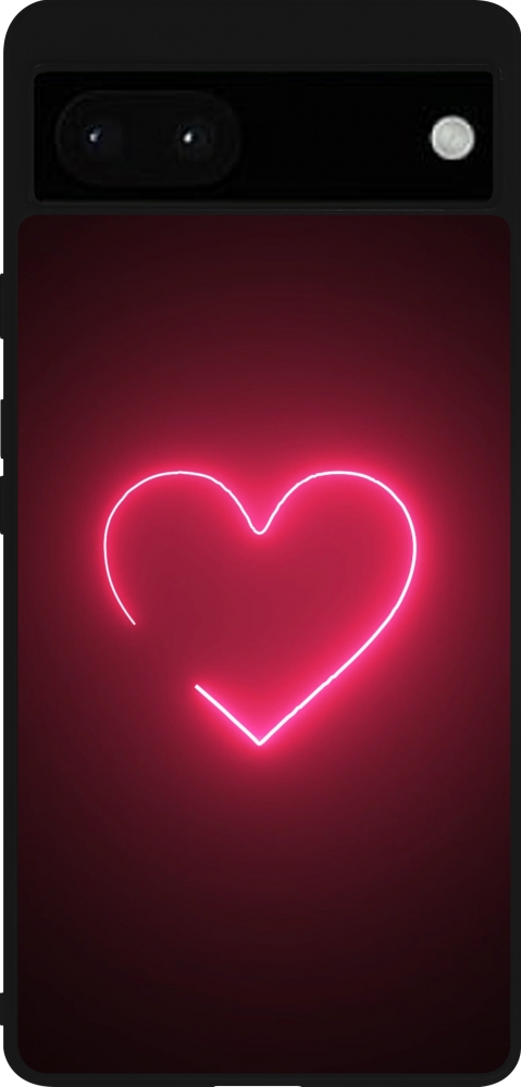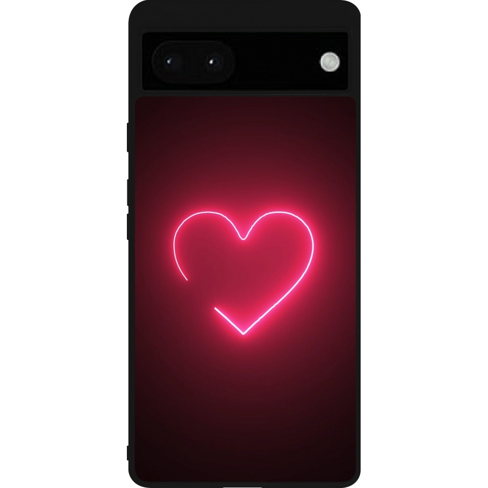 Coque Google Pixel 6a - Silicone rigide noir Valentine 2023 single neon heart