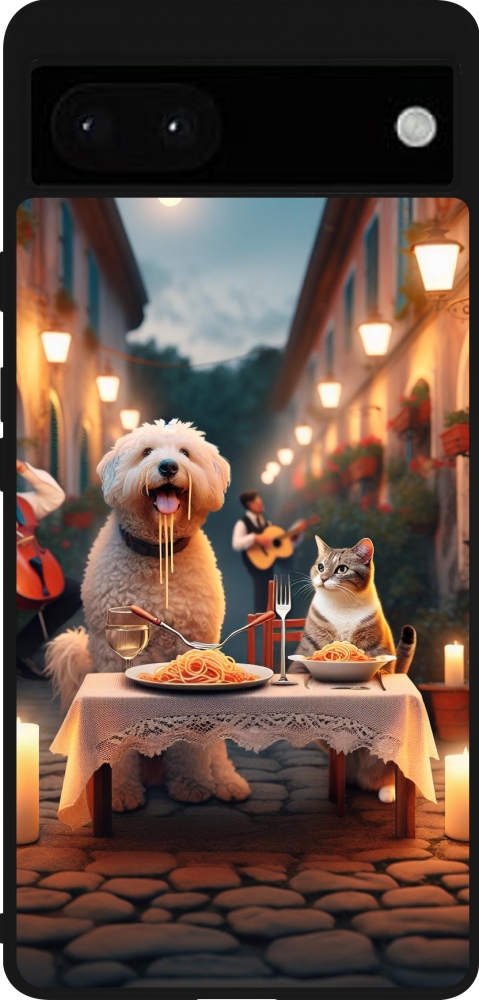 Coque Google Pixel 6a - Silicone rigide noir Valentine 2024 Dog & Cat Candlelight
