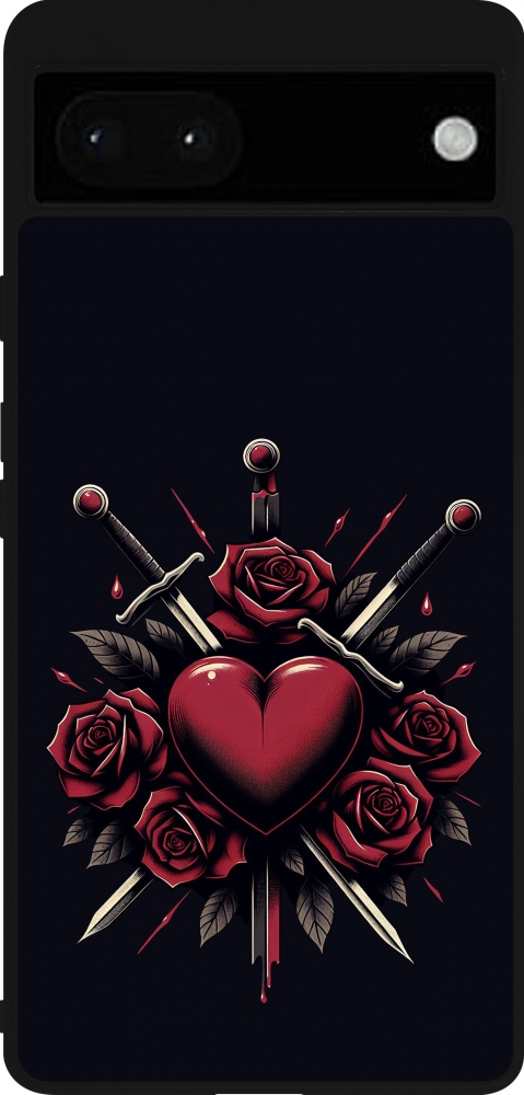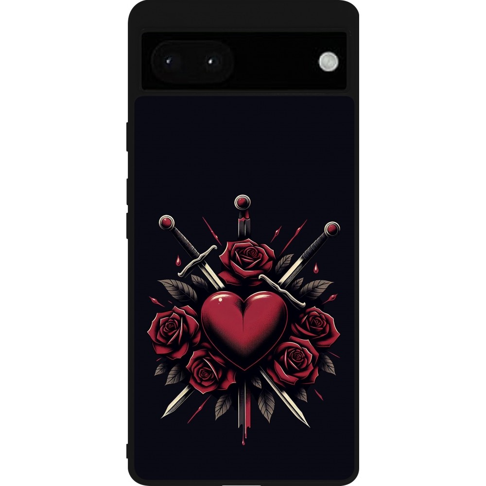 Coque Google Pixel 6a - Silicone rigide noir Valentine 2024 gothic love