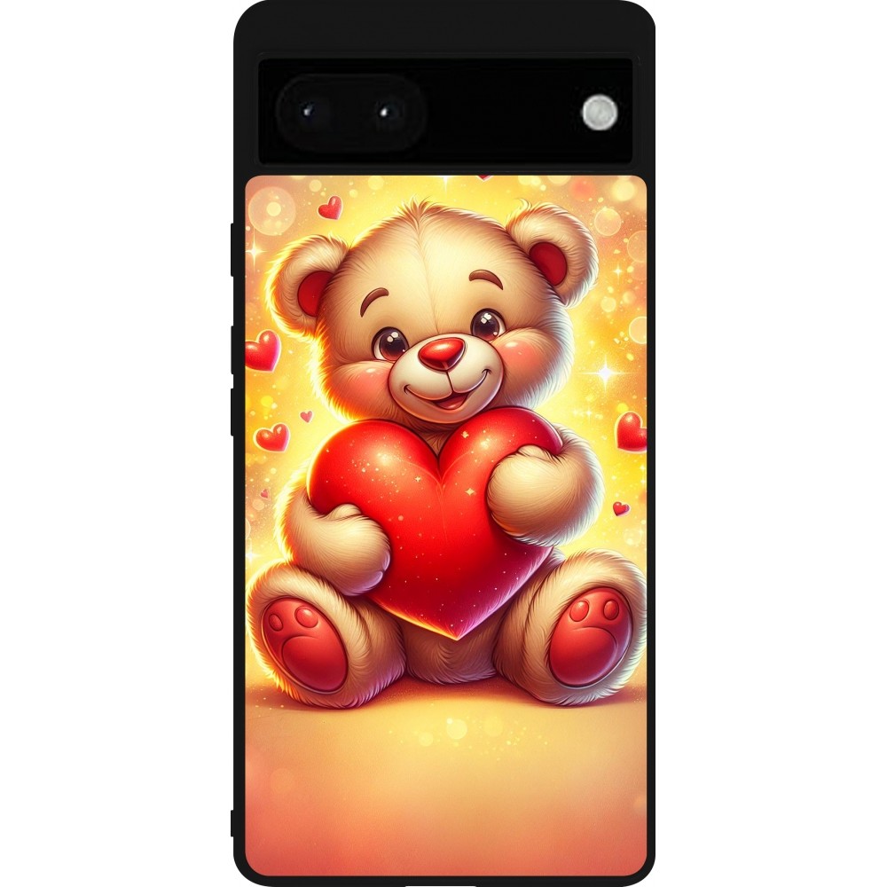 Coque Google Pixel 6a - Silicone rigide noir Valentine 2024 Teddy love