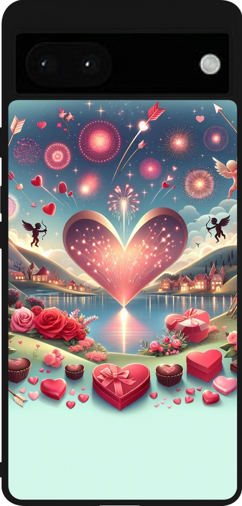 Coque Google Pixel 6a - Silicone rigide noir Valentine 2025 Chic
