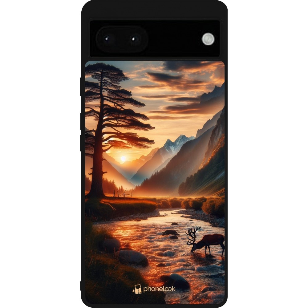 Coque Google Pixel 6a - Silicone rigide noir Valley Sunset Deer Tree
