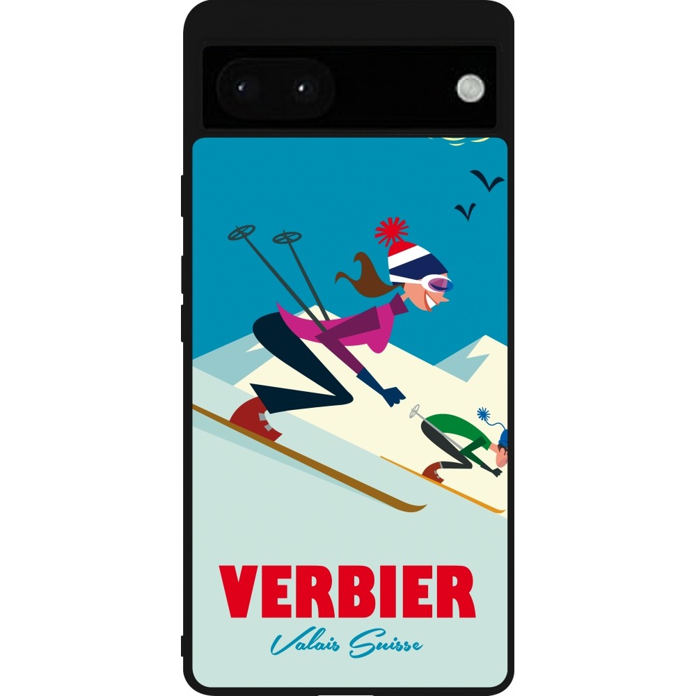 Coque Google Pixel 6a - Silicone rigide noir Verbier Ski Downhill
