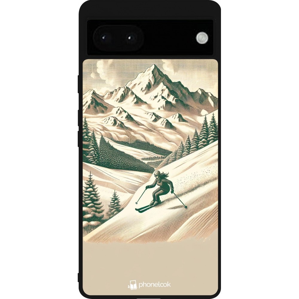 Coque Google Pixel 6a - Silicone rigide noir Vintage Ski Mountain
