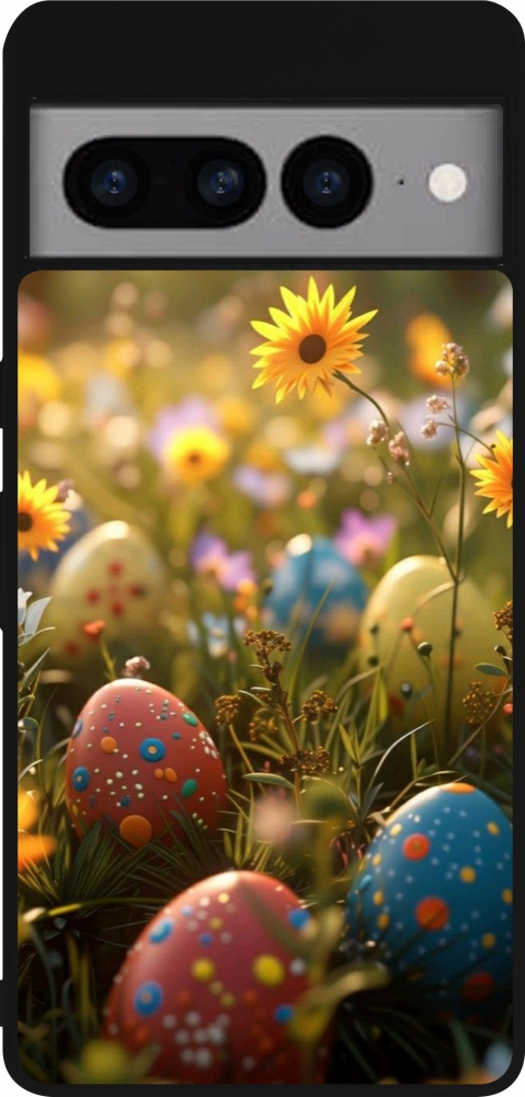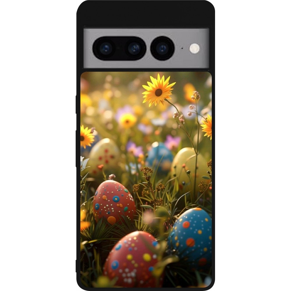 Coque Google Pixel 7 Pro - Silicone rigide noir Easter 2026 Decorated eggs