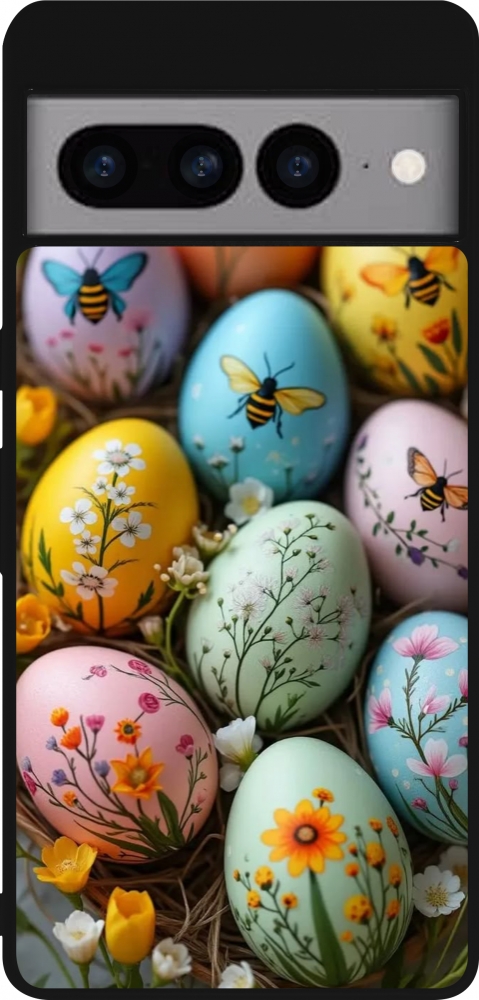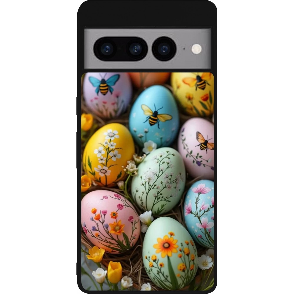 Coque Google Pixel 7 Pro - Silicone rigide noir Easter 2026 Eggs with bees