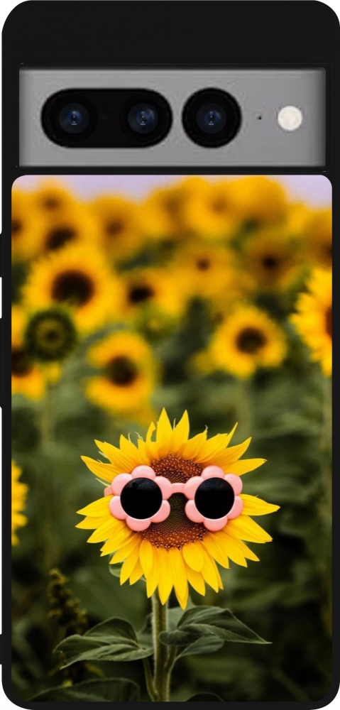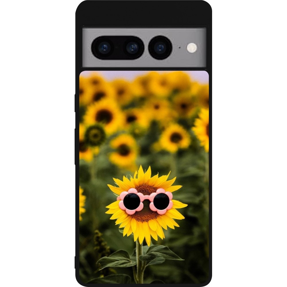 Coque Google Pixel 7 Pro - Silicone rigide noir Sunflower with glasses Spring 2026
