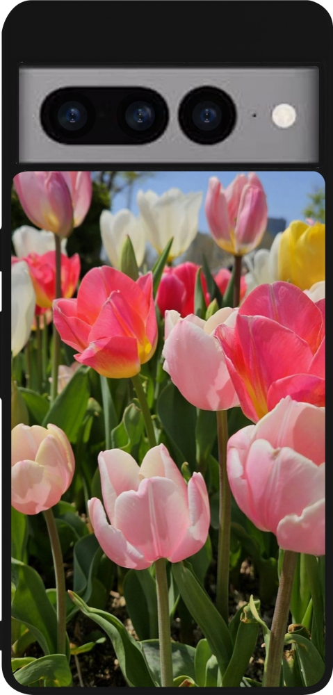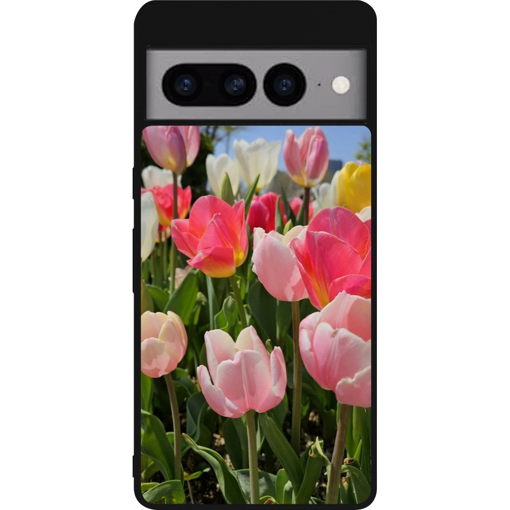 Coque Google Pixel 7 Pro - Silicone rigide noir Tulips Spring 2026