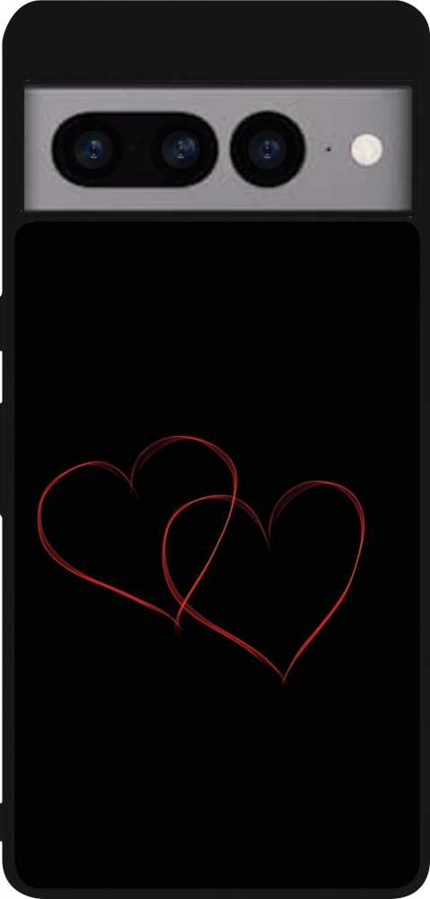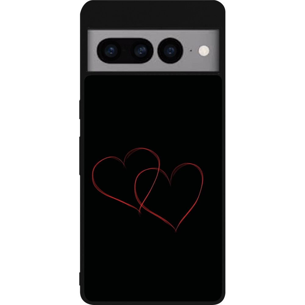 Coque Google Pixel 7 Pro - Silicone rigide noir Valentine 2023 attached heart