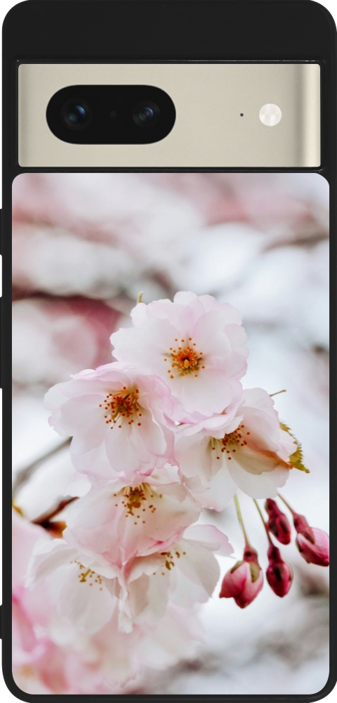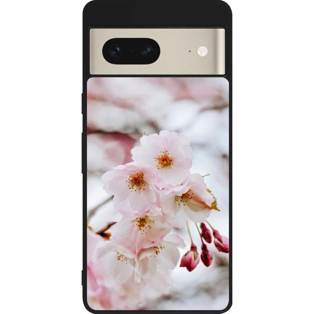 Coque Google Pixel 7 - Silicone rigide noir Cherry tree 2026