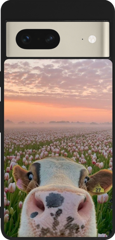 Coque Google Pixel 7 - Silicone rigide noir Cow with tulips 2026
