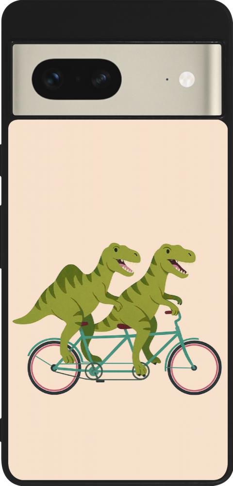 Coque Google Pixel 7 - Silicone rigide noir Dinosaurs on bikes 2026