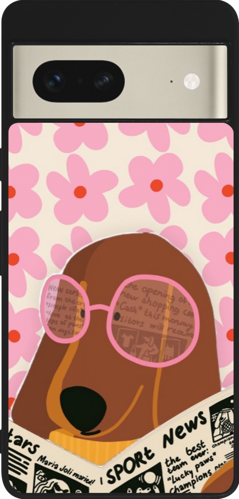 Coque Google Pixel 7 - Silicone rigide noir Dog with newspaper 2026