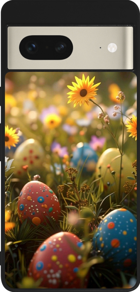 Coque Google Pixel 7 - Silicone rigide noir Easter 2026 Decorated eggs