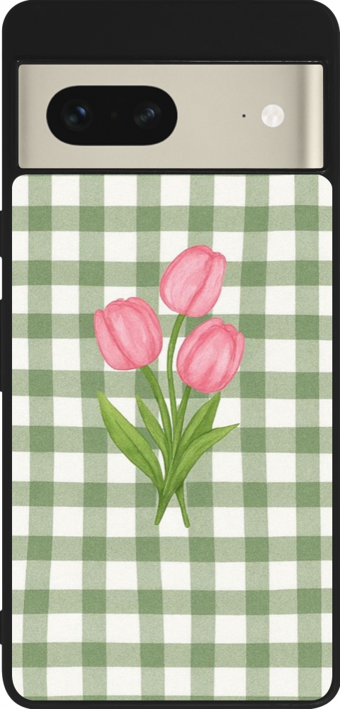 Coque Google Pixel 7 - Silicone rigide noir Green vichy tulips 2026