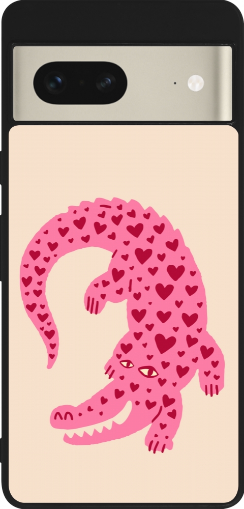 Coque Google Pixel 7 - Silicone rigide noir Pink crocodile 2026