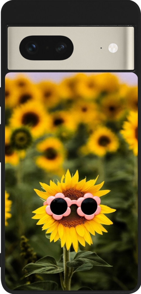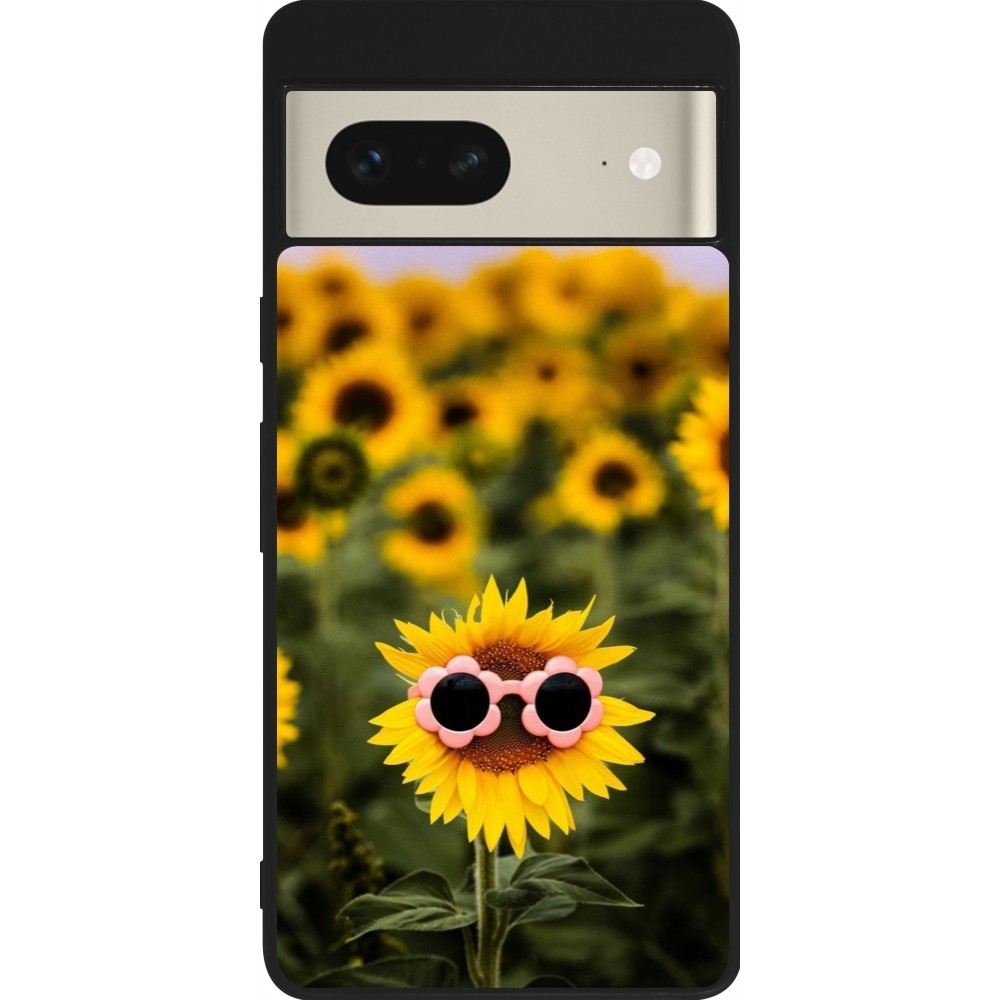 Coque Google Pixel 7 - Silicone rigide noir Sunflower with glasses 2026