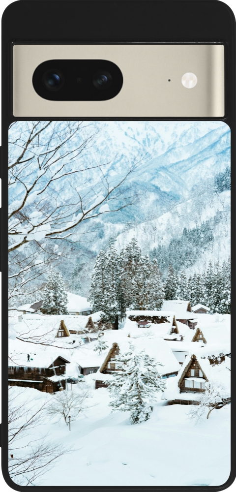 Coque Google Pixel 7 - Silicone rigide noir Winter 25 Winter snowy landscape