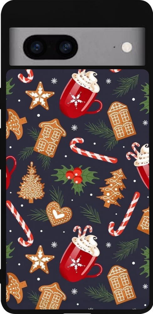 Coque Google Pixel 7a - Silicone rigide noir Christmas 25 Pattern Gingerbread House