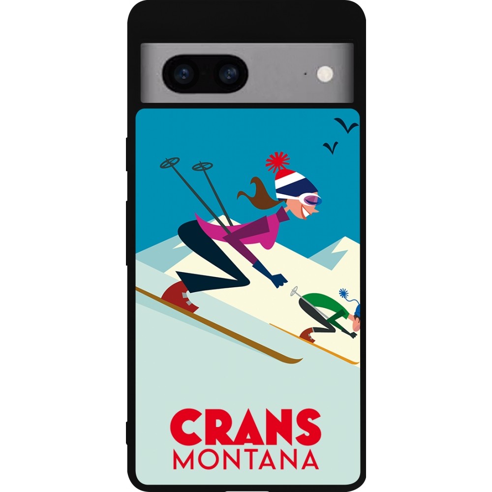 Coque Google Pixel 7a - Silicone rigide noir Crans-Montana Ski Downhill