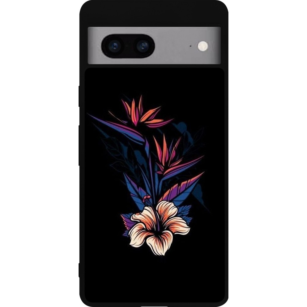 Coque Google Pixel 7a - Silicone rigide noir Dark Flowers