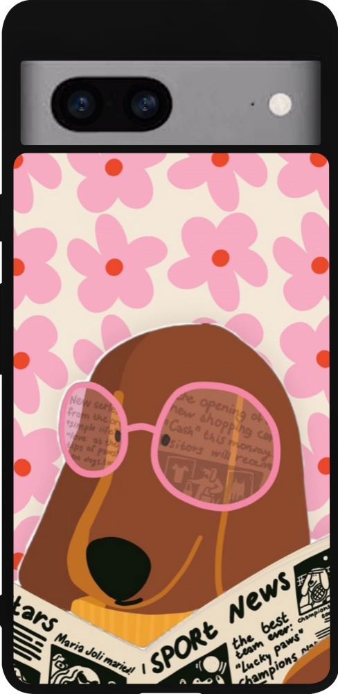 Coque Google Pixel 7a - Silicone rigide noir Dog with newspaper Spring 2026