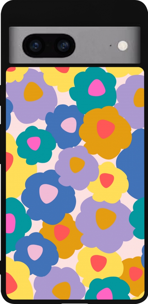 Coque Google Pixel 7a - Silicone rigide noir Easter 2024 flower power