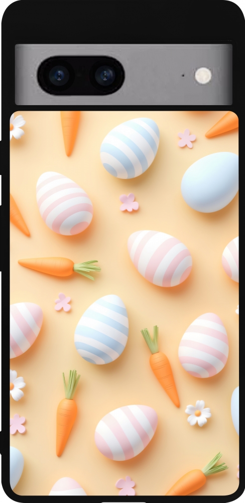 Coque Google Pixel 7a - Silicone rigide noir Easter 2026 Pattern Easter