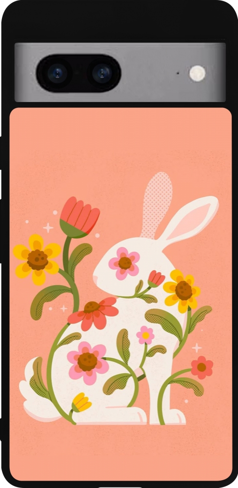Coque Google Pixel 7a - Silicone rigide noir Easter 2026 Rabbit collage