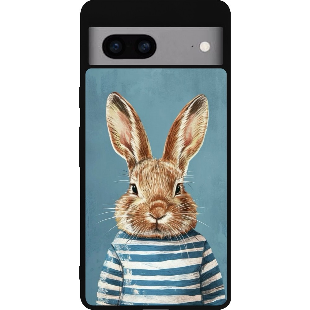 Coque Google Pixel 7a - Silicone rigide noir Easter 2026 Rabbit navy