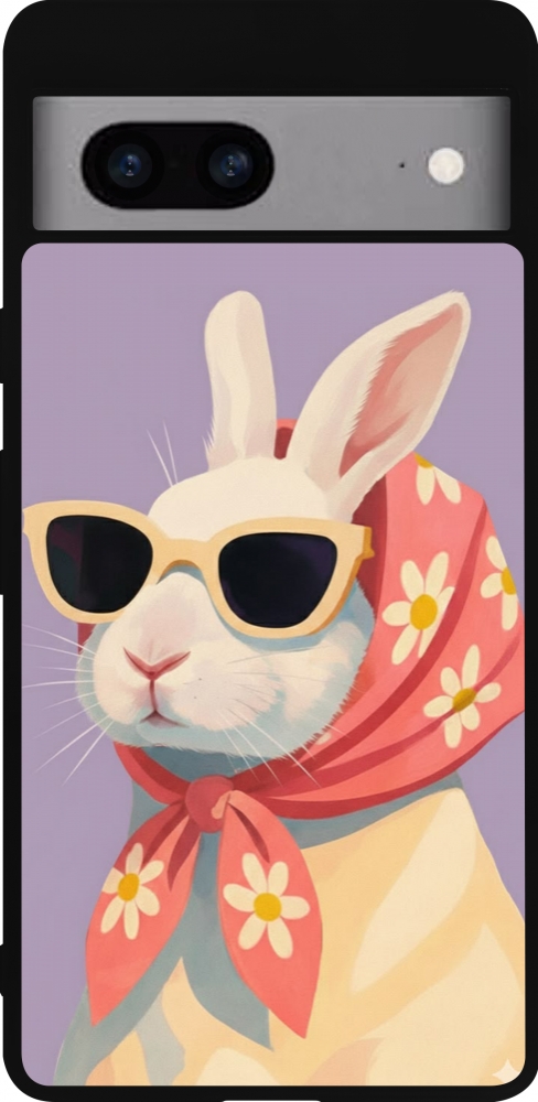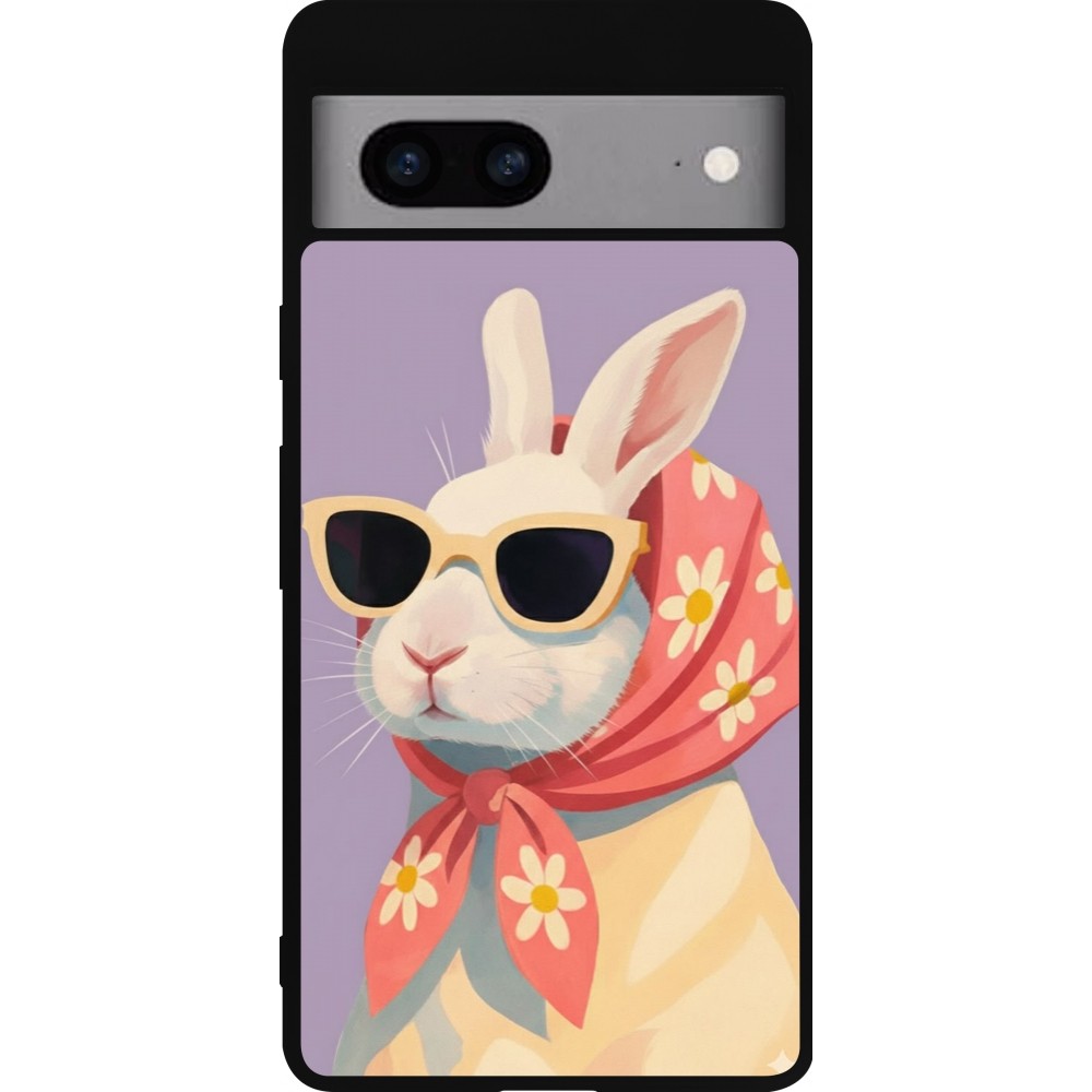 Coque Google Pixel 7a - Silicone rigide noir Easter 2026 Rabbit with scarf