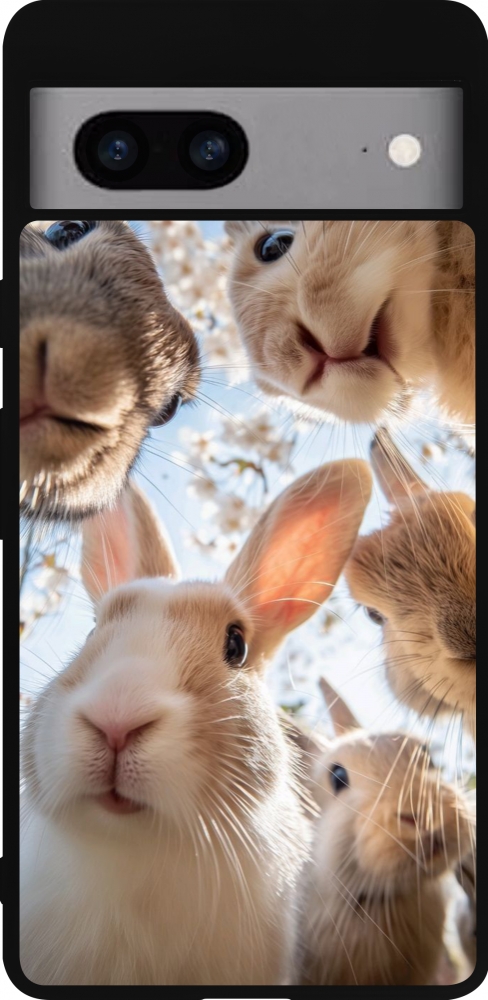 Coque Google Pixel 7a - Silicone rigide noir Easter 2026 Rabbits