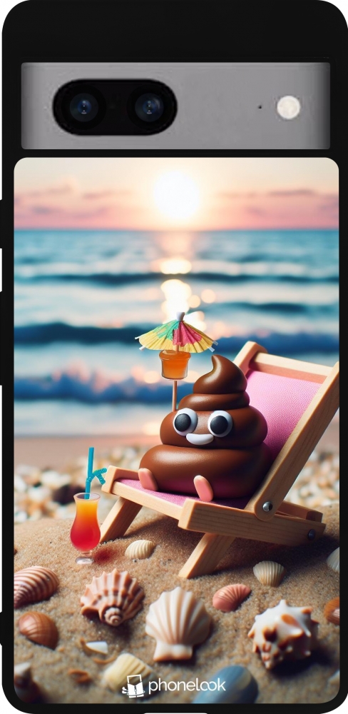 Coque Google Pixel 7a - Silicone rigide noir Emoji caca sur chaise longue