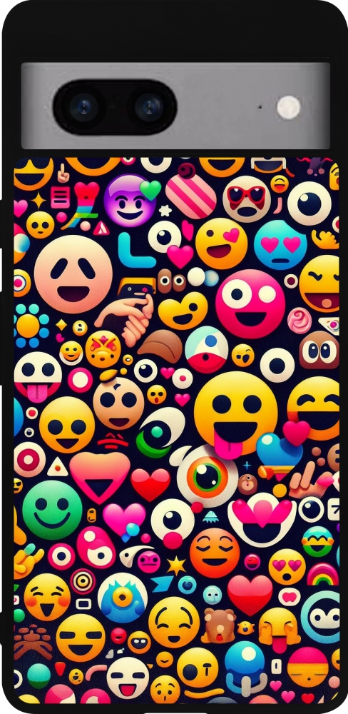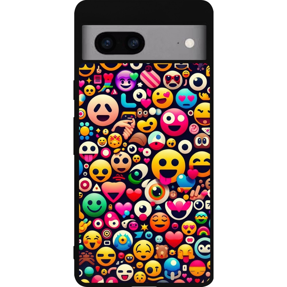 Coque Google Pixel 7a - Silicone rigide noir Emoji Mix Color