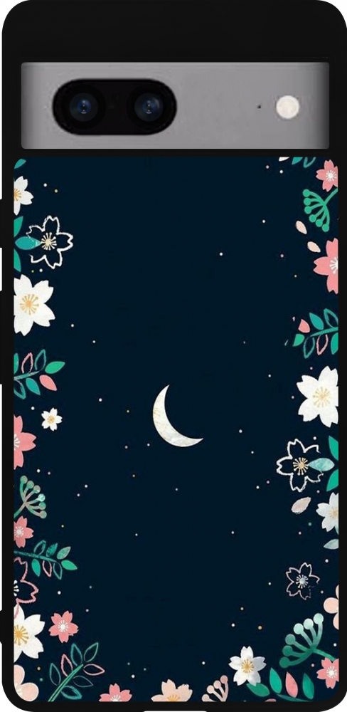 Coque Google Pixel 7a - Silicone rigide noir Flowers space