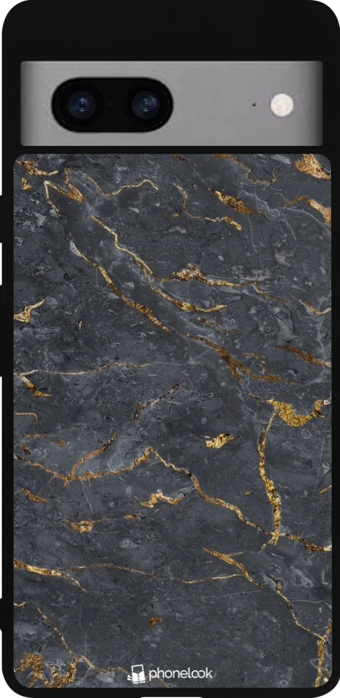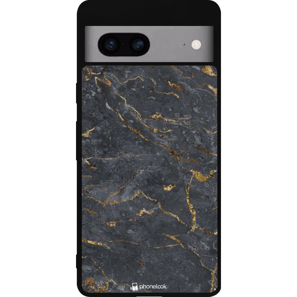 Coque Google Pixel 7a - Silicone rigide noir Grey Gold Marble