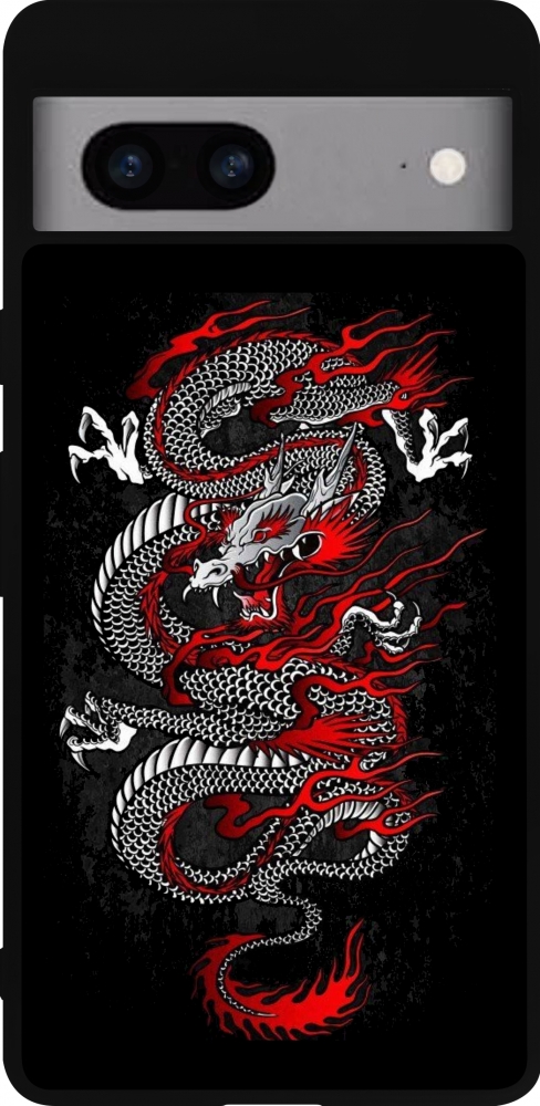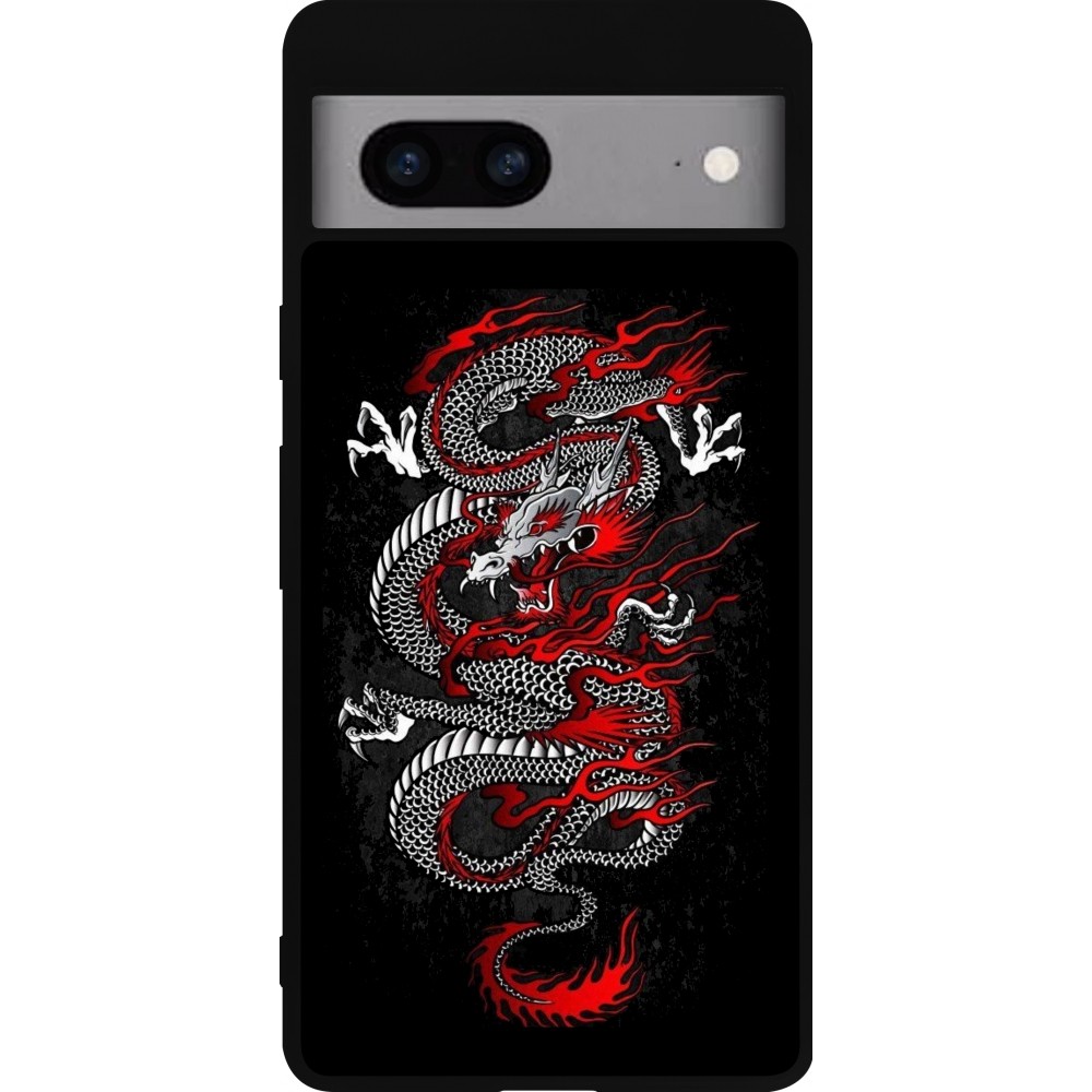 Coque Google Pixel 7a - Silicone rigide noir Japanese style Dragon Tattoo Red Black