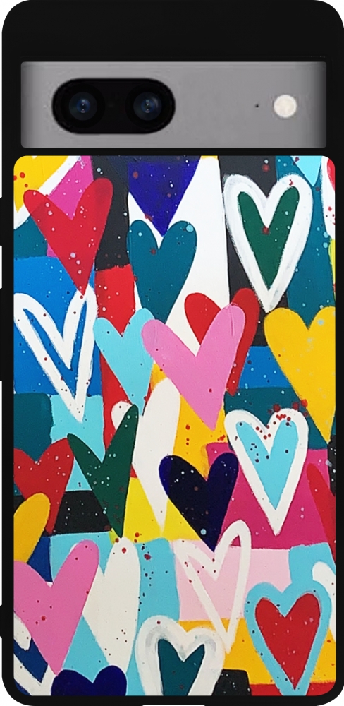 Coque Google Pixel 7a - Silicone rigide noir Joyful Hearts