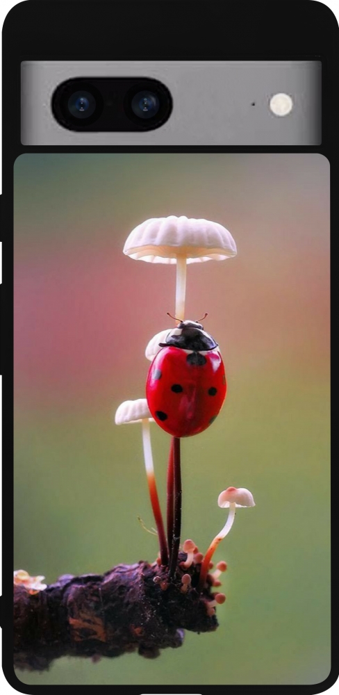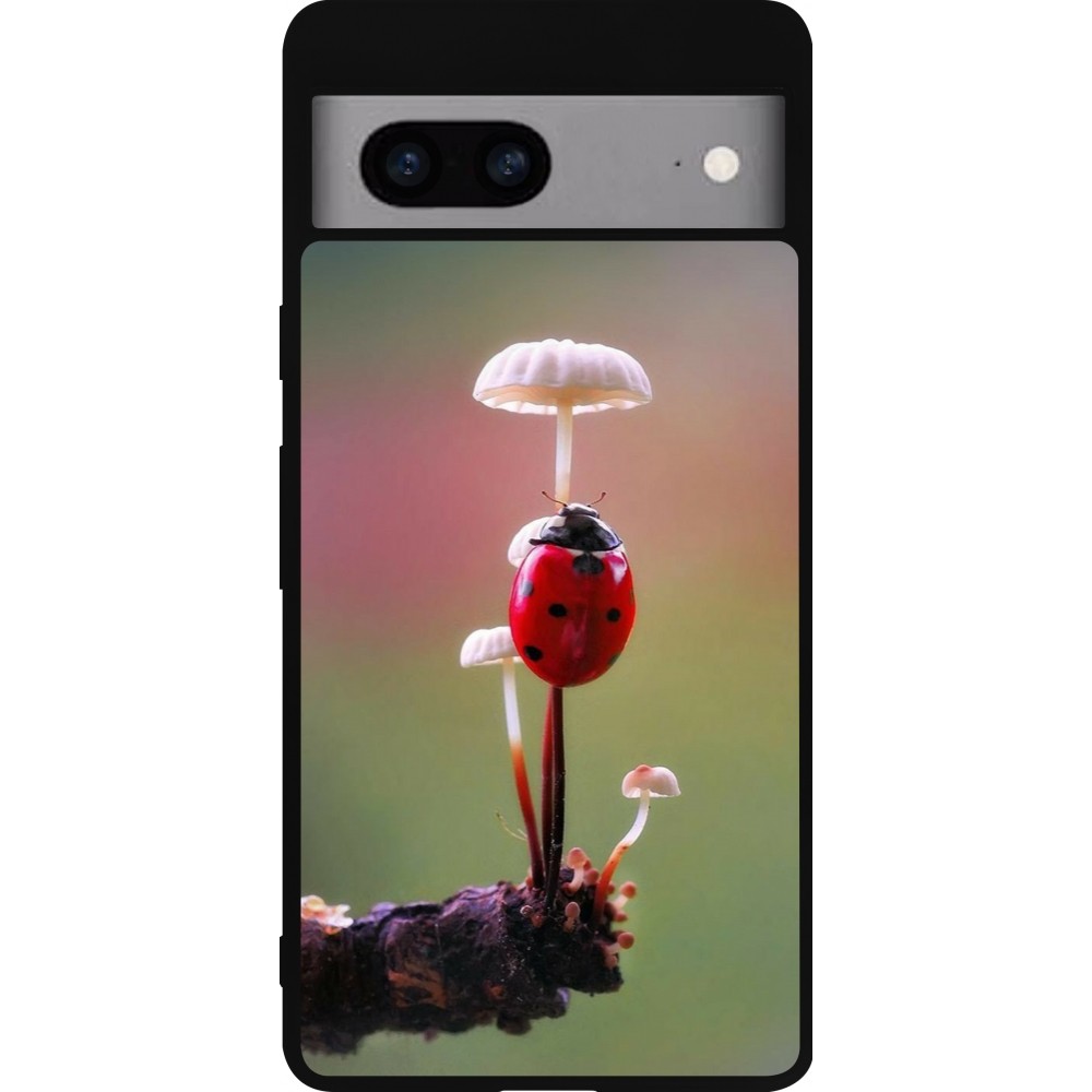 Coque Google Pixel 7a - Silicone rigide noir Ladybird on a mushroom Spring 2026