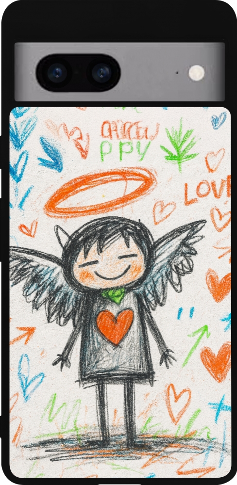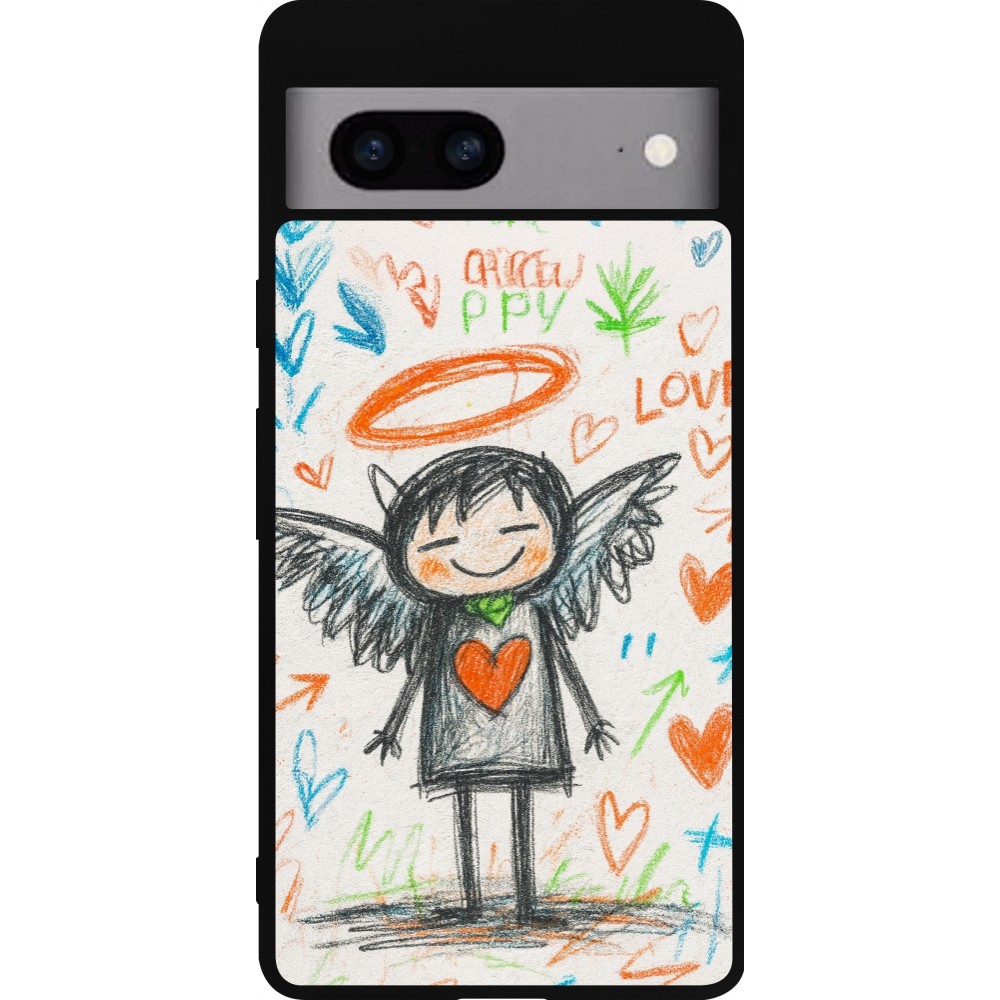 Coque Google Pixel 7a - Silicone rigide noir Little Angel Sketch Love
