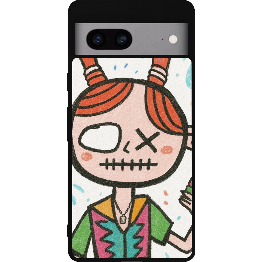 Coque Google Pixel 7a - Silicone rigide noir Little Girl Sketch