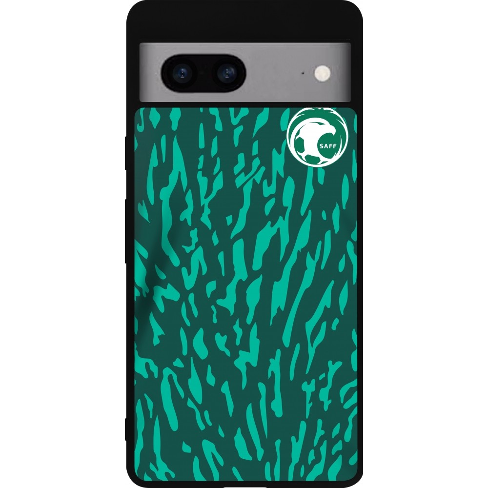 Coque Google Pixel 7a - Silicone rigide noir Maillot de football Arabie saoudite 2022 personnalisable