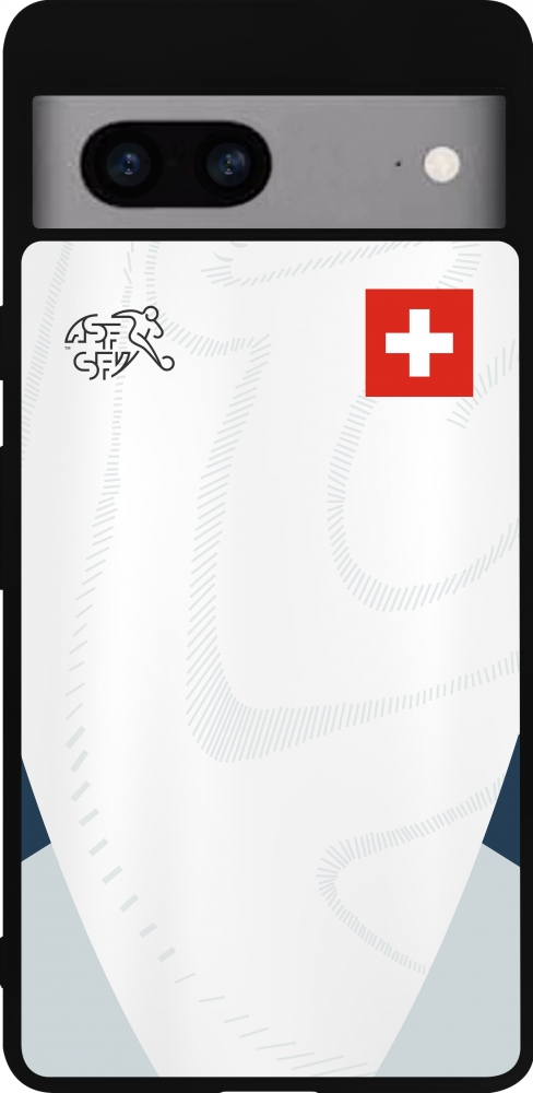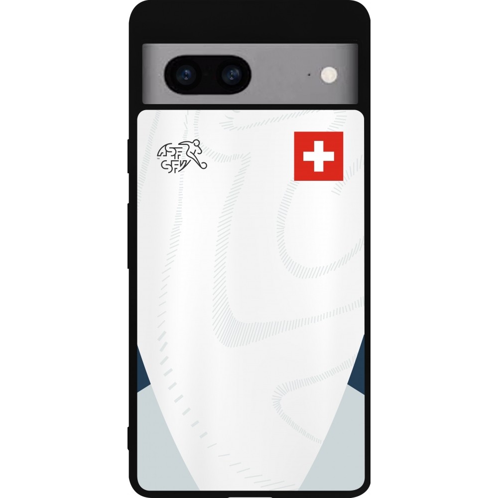 Coque Google Pixel 7a - Silicone rigide noir Maillot de football Suisse Extérieur personnalisable