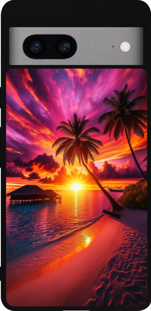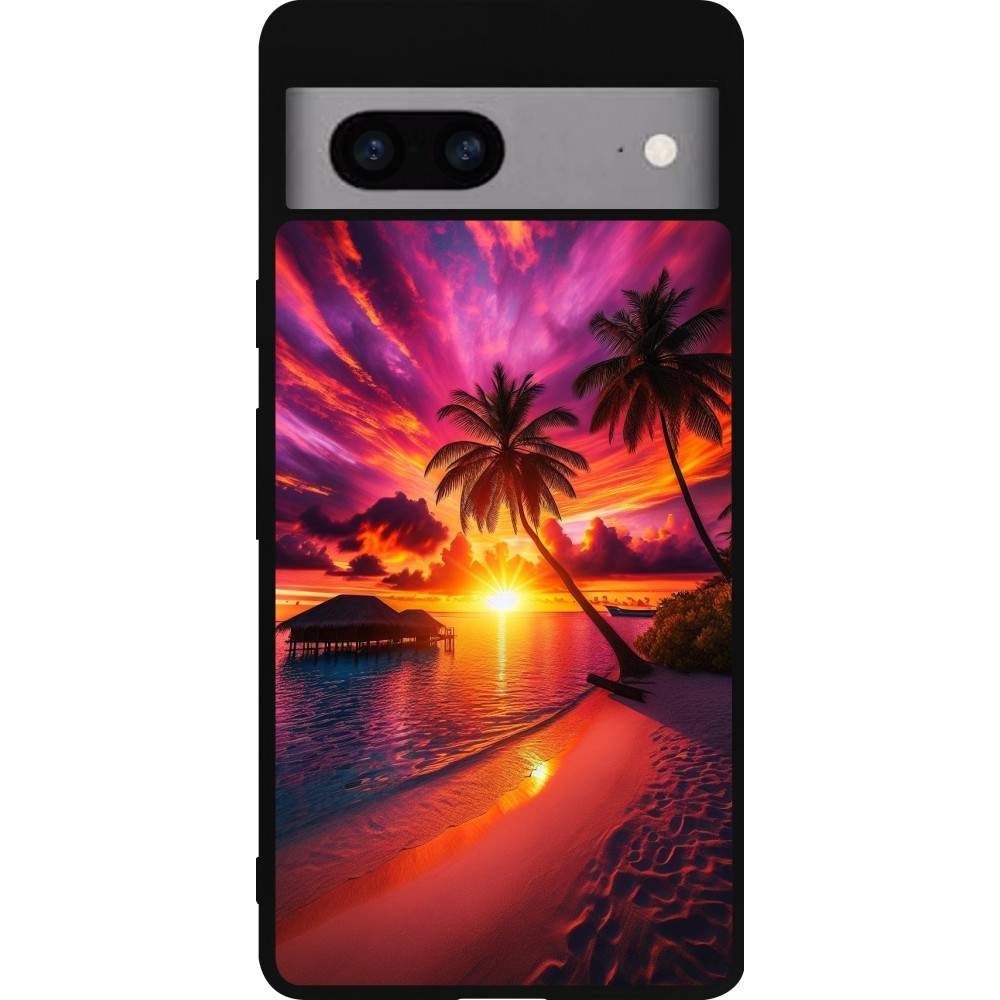 Coque Google Pixel 7a - Silicone rigide noir Maldives Dusk Bliss