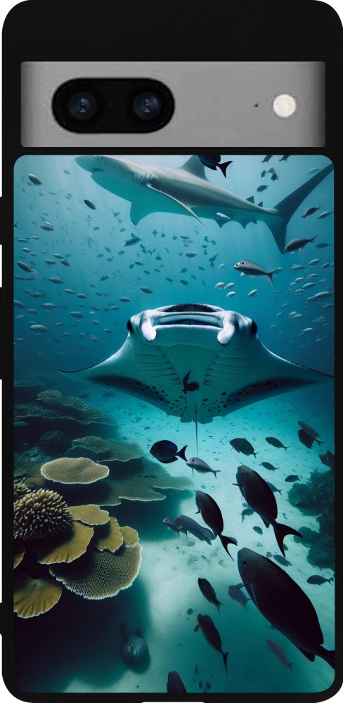 Coque Google Pixel 7a - Silicone rigide noir Manta Lagon Nettoyage