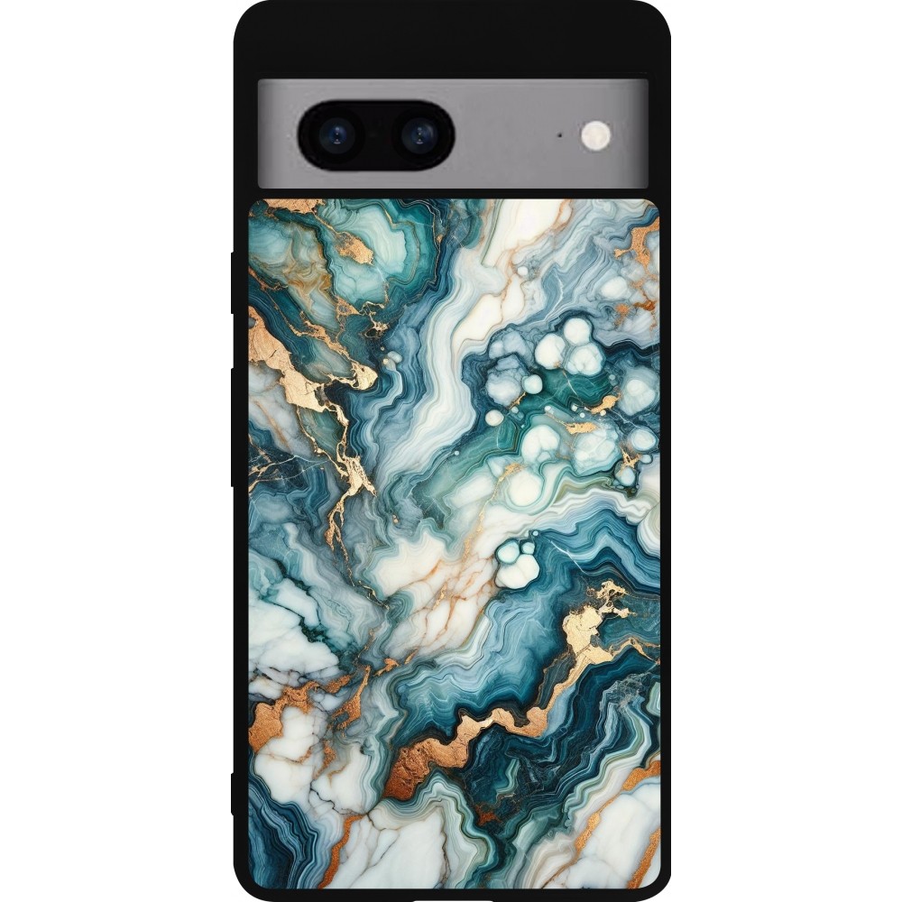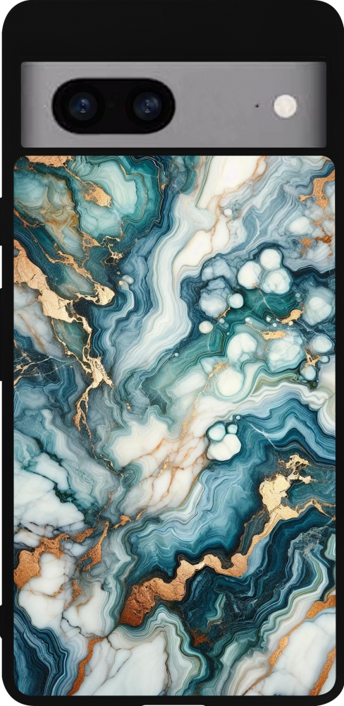 Coque Google Pixel 7a - Silicone rigide noir Marbre Vert Bleu Doré